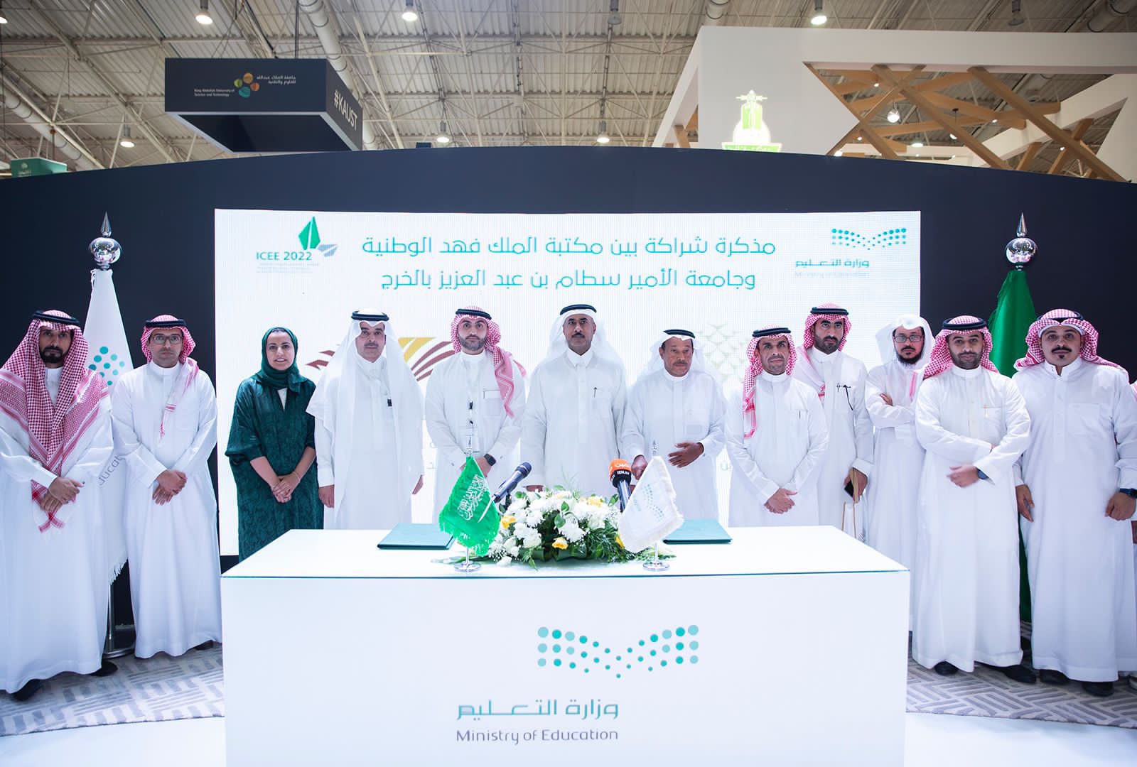 مذكرة تعاون بين عمادة شؤون المكتبات ومكتبة الملك فهد الوطنية بهدف تعزيز التعاون في مجالات البحث العلمي والتدريب ودعم البرامج التطويرية والمجتمعية والثقافية، وقد وقعها سعادة وكيل الجامعة للدراسات العليا والبحث العلمي د. عبدالله بن نضال عداس.