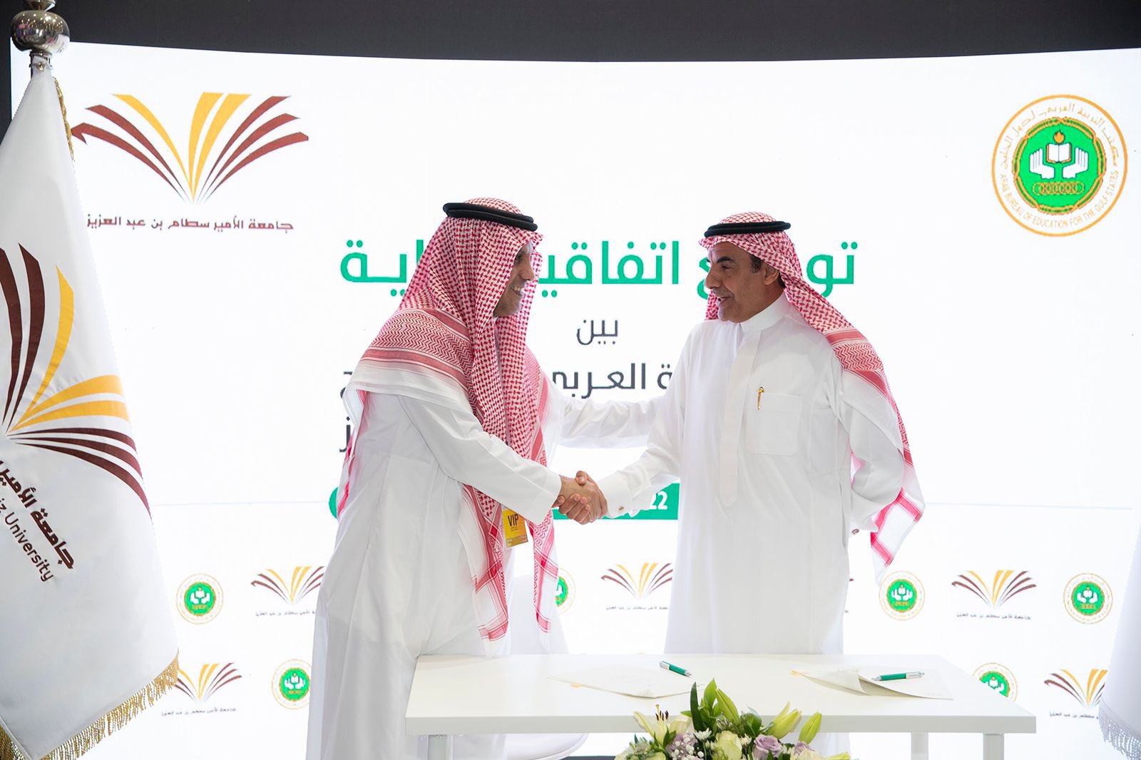 مذكرة تفاهم مع مكتب التربية العربي لدول الخليج، وقعها سعادة رئيس الجامعة مع معالي المدير العام لـمكتب التربية العربي لدول الخليج د. عبدالرحمن بن محمد العاصمي.